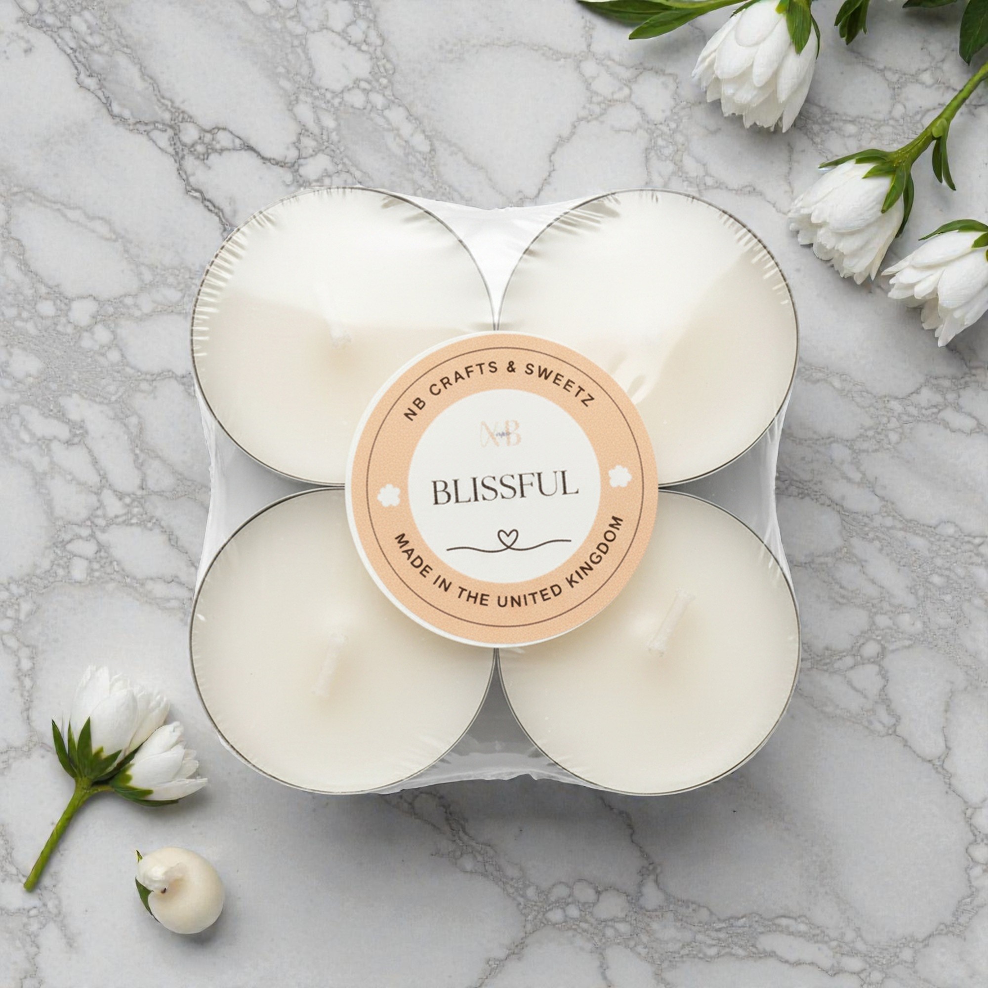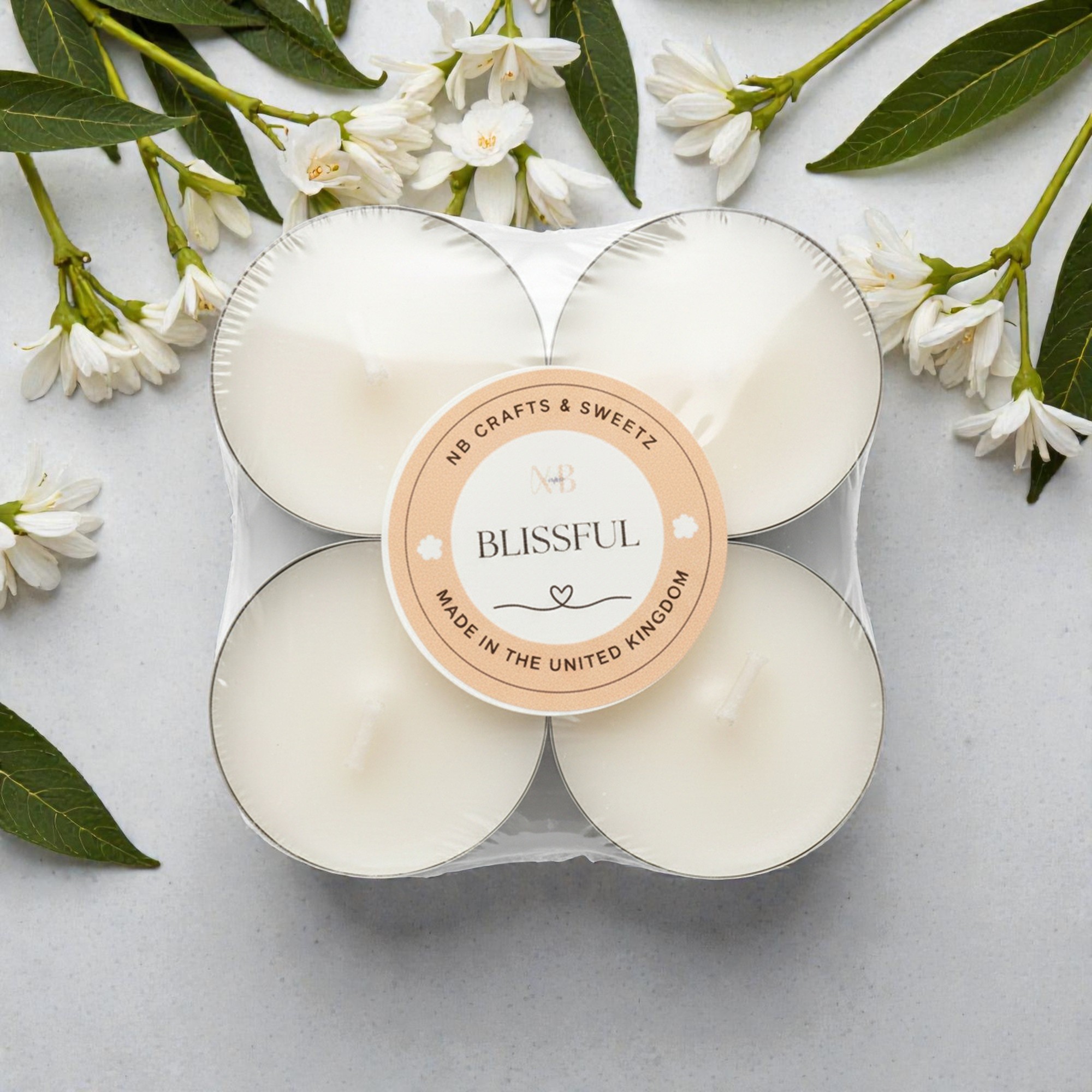 Create calm, effortless ambience with our Jasmine Scented Tealights, handmade in the UK using a natural blend of coconut and rapeseed wax. This 4-pack delivers a clean, even burn and a soft floral jasmine fragrance that gently fills your space without overpowering. Perfect for relaxing evenings, self-care rituals, meditation, or table styling, these jasmine scented tealights add warmth and elegance to any room. Each tealight burns smoothly with minimal soot, offering up to 20 hours of fragrance per pack. Beautifully presented and easy to use, they’re ideal for everyday comfort or thoughtful gifting.